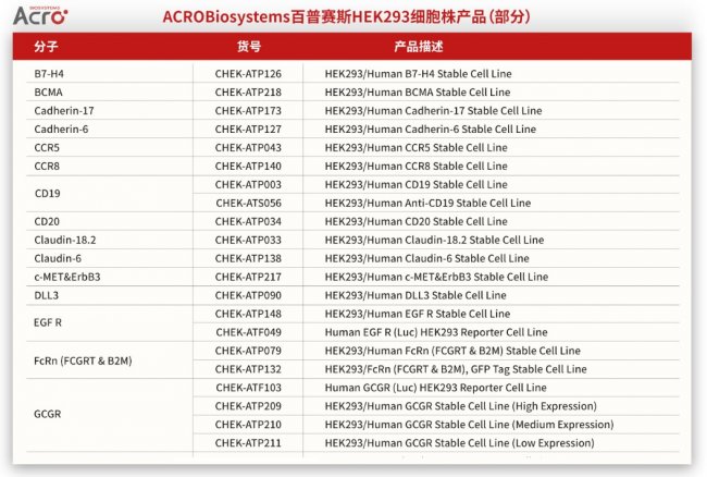 ACROBiosystems百普赛斯HEK293细胞株产品概览