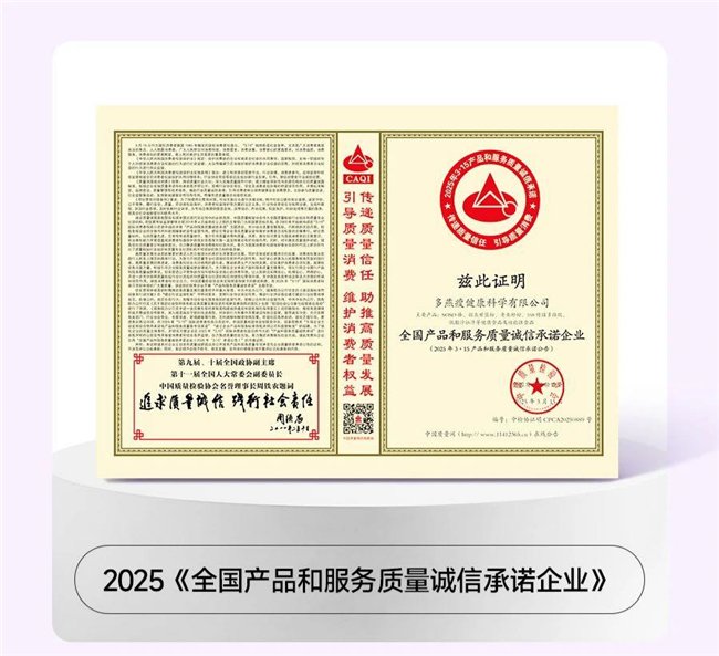 选健康产品,品质与安全永远是第一位。这一点,多燕瘦从未有过丝毫松懈。作为深受消费者信赖的品牌,多燕瘦接连斩获中国质量检验协会颁发的“全国产品和服务质量诚信承诺企业”“全国产品和服务质量诚信品牌”等多项国家级荣誉,旗下纤纤饮、七日辟谷套餐、SJP活性总统菌等核心产品,历经权威机构多维度检测均全程合格,每一份证书,都是对多燕瘦品质的硬核背书。不用再担心产品质量问题,不用为消费安全焦虑,多燕瘦用实打实的权威认证,给你满满的消费安全感。