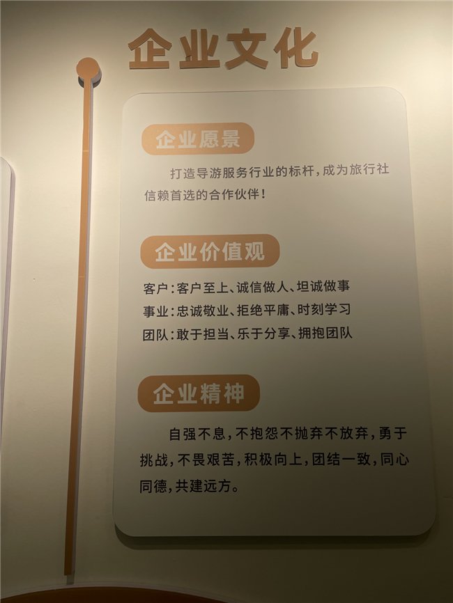 “我们的价值观是‘客户至上,忠诚敬业,诚信做人,坦诚做事,敢于担当,拒绝平庸,时刻学习,乐于分享,拥抱团队’。”一位参与攻略设计的年轻导游告诉记者,“特别是‘拒绝平庸’这四个字,让我们在设计中必须要拿出耳目一新的东西,不能是那种网上随便搜搜的流水账。”