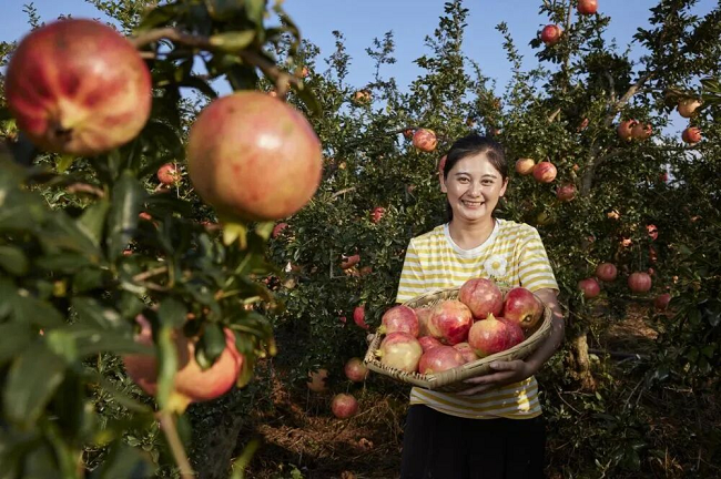何爽:我们固定员工16人,季节性用工100人到300人不等。石榴产出旺季仓库最多300人,主要做采摘、选果、打包。打包岗位对女性和中老年特别友好,不需要重体力,离家近。但灵活用工没有五险一金,所以我给所有灵活用工都买了意外险,旺季300人时也都买,一年几十万元。这笔钱必须花——对他们是保障,对企业也是保障。