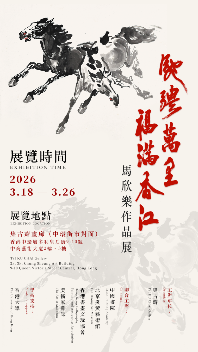 “驰骋万里 福满香江——马欣乐作品展”将在集古斋画廊2F(香港中环中商艺术大厦2、3楼)免费展出至3月26日。