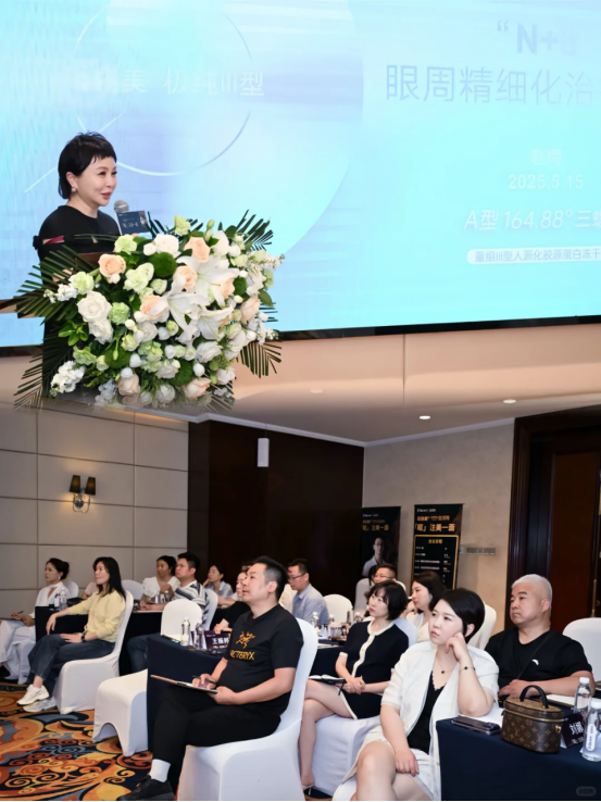 此次论坛上,赵梅院长围绕胶原・眶周年轻化主题,分享了多年临床总结的综合抗衰方案。她提出,眼周衰老的核心在于胶原流失,而科学抗衰需兼顾 “直补胶原 + 刺激胶原” 双重路径:通过精准注射直补眼周所需胶原,同时搭配光电技术刺激自身胶原再生,从修复皮肤屏障、重建胶原网到改善细纹炎症,层层递进实现眼周年轻化。这份源于临床、归于真实的分享,不仅获得了现场同行的高度认可,更让 “自然灵动、拒绝僵硬” 的抗衰理念深入人心。