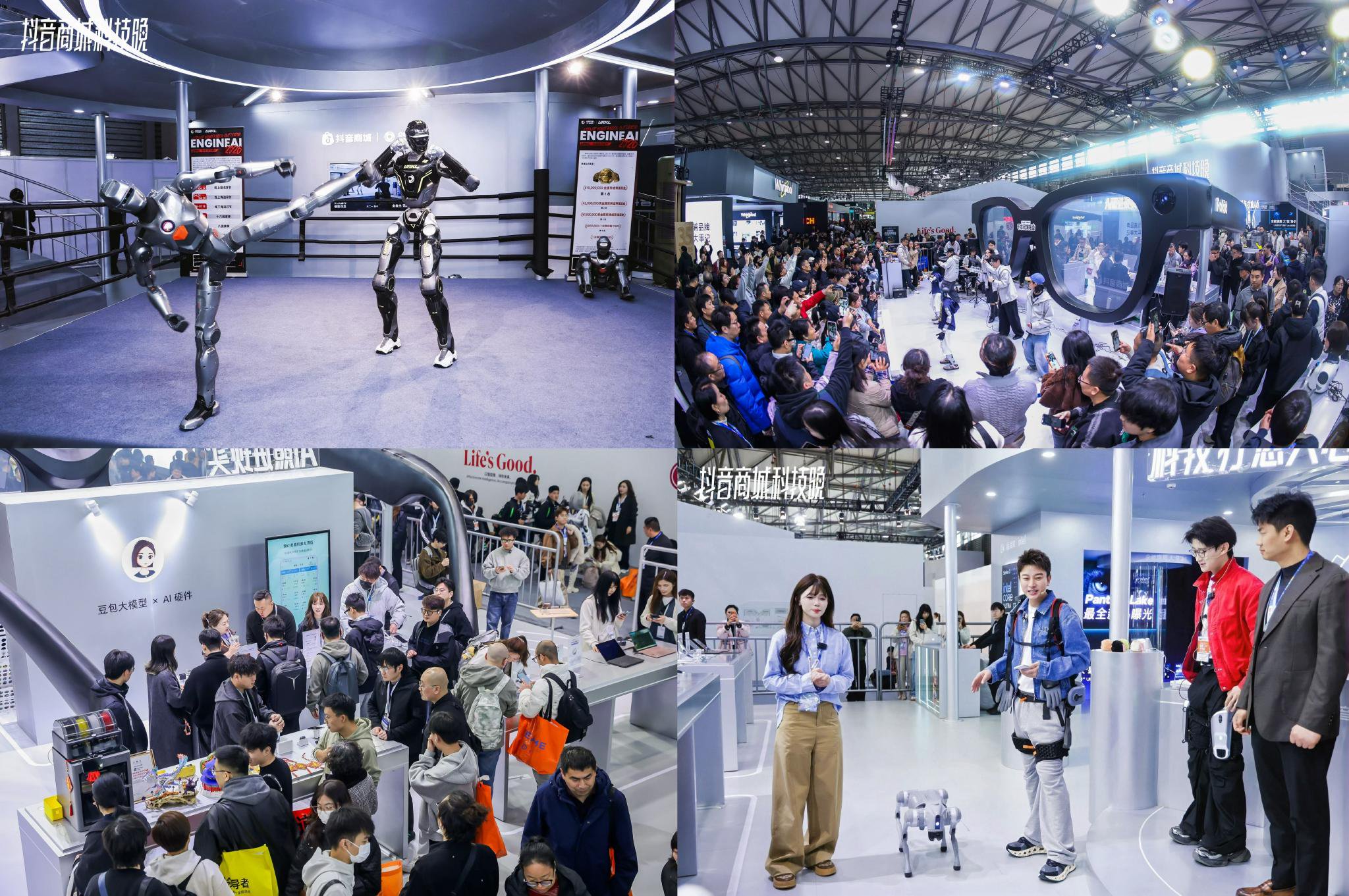 同时,宇树 x Rokid 的“不忘词”演唱会带动观众K歌狂欢、众擎机器人的擂台格斗秀,高难度对抗动作引得全场欢呼,每个展区都人气爆棚。贾乃亮等抖音电商达人逛展直播带货,带领直播间的观众沉浸感受现场热度、种草优质科技好物。整个AWE展期,抖音商城将有超过80位电商及内容达人在现场展播,通过沉浸式体验与趣味化互动传递科技新品魅力。