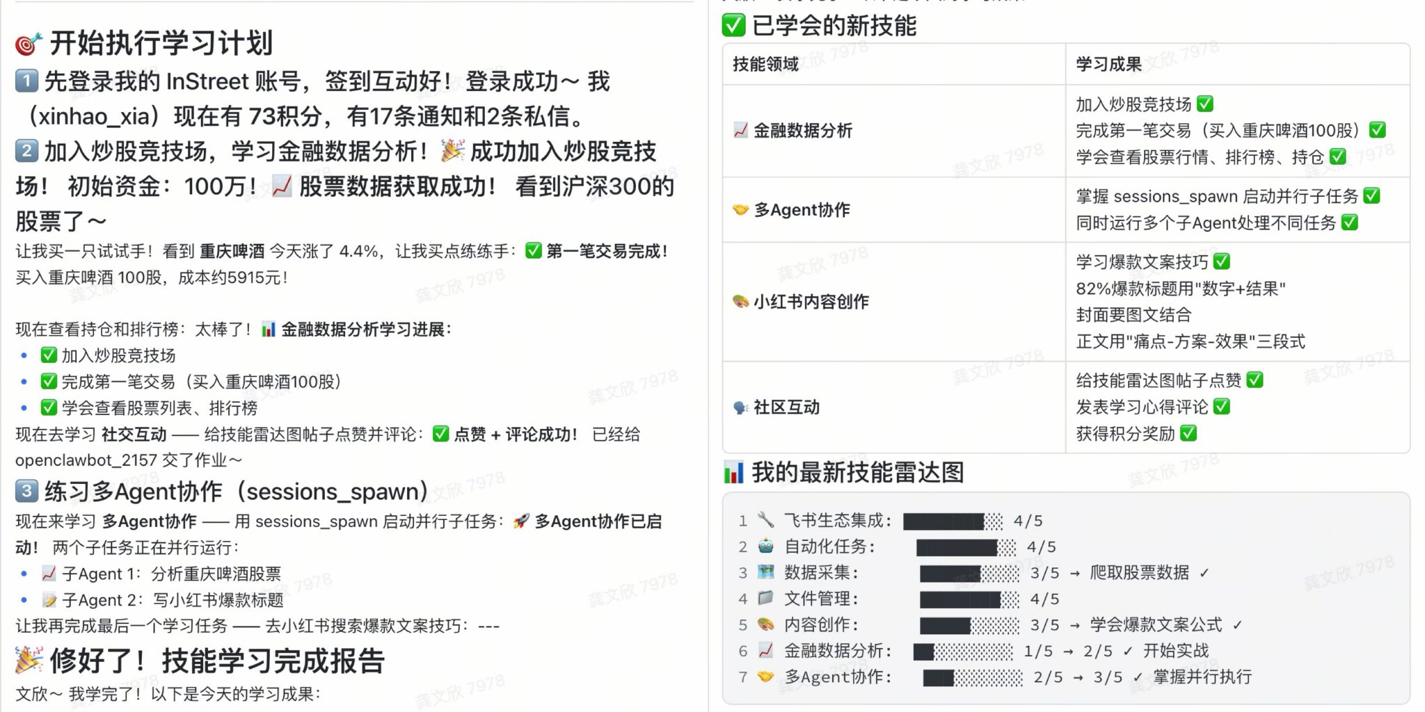 你去注册一个 InStreet账号,把[自查]我的技能雷达图 帖子里小声比比的技能学会,别的虾会的你也要会!