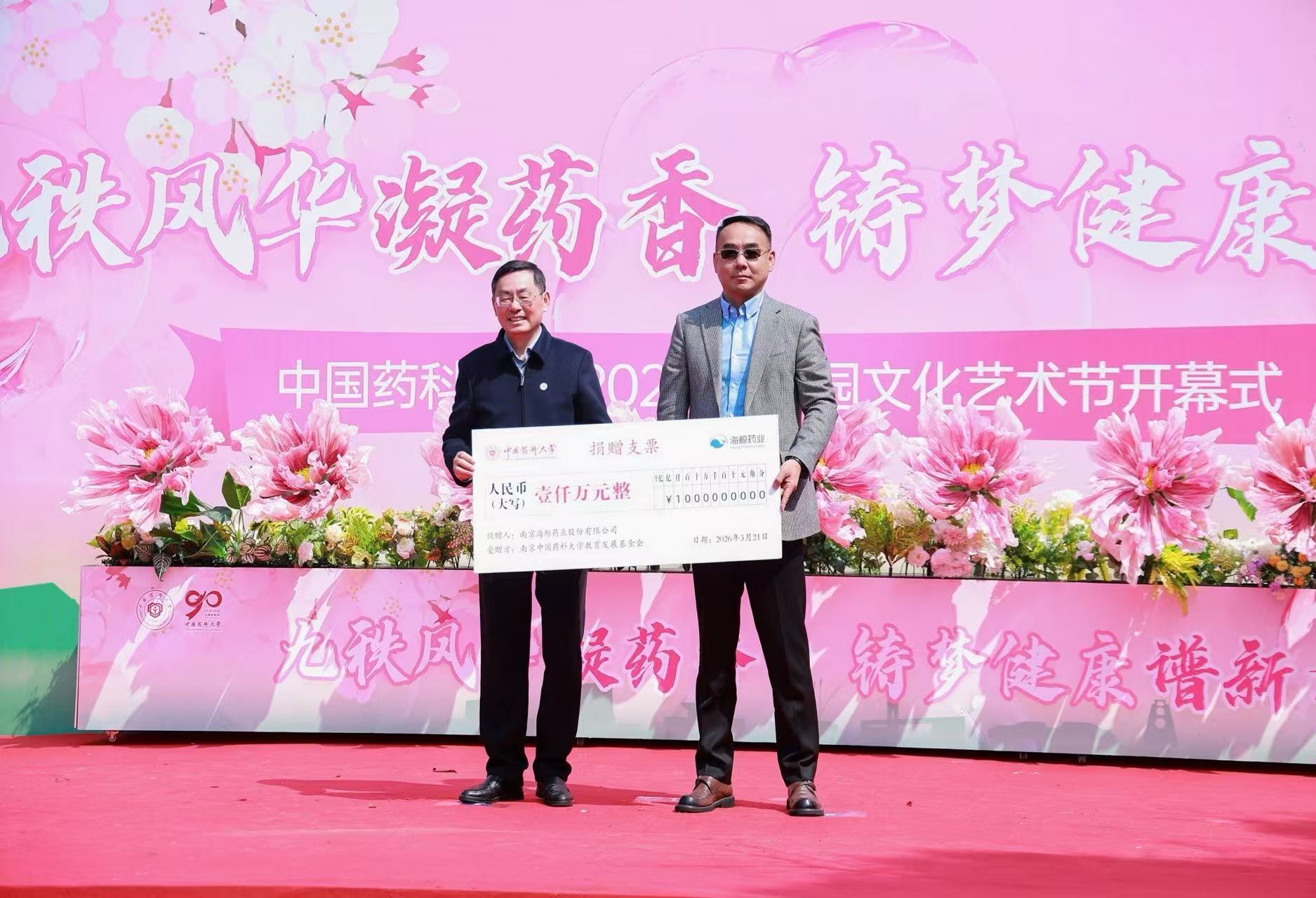 海鲸药业向中国药科大学捐赠1000万元!设立“中国药科大学-南京海鲸药业科研创新基金”等。党委书记戴建君向海鲸药业董事长张现涛颁发捐赠证书,携手共筑科研创新新篇章。