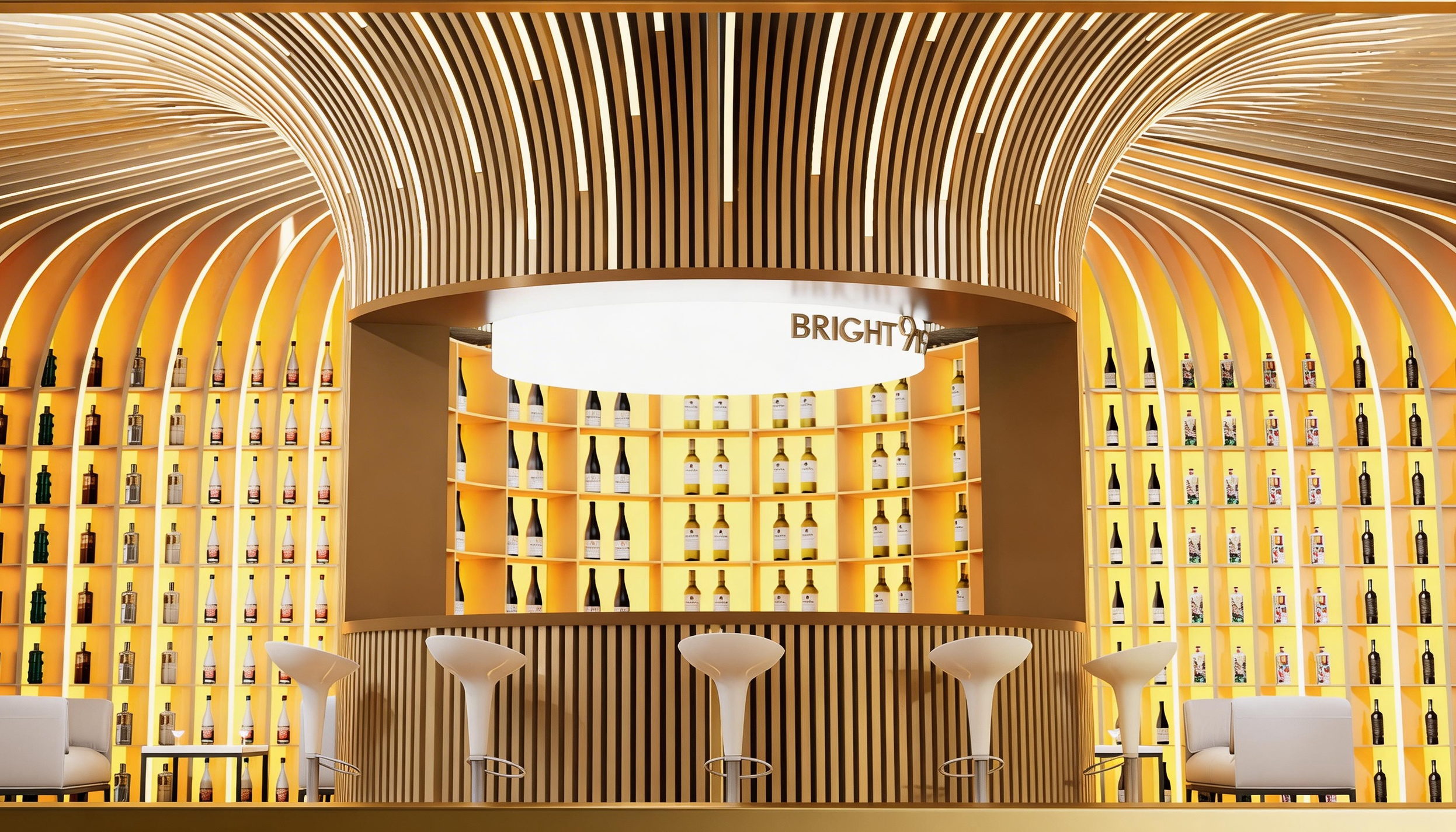 展厅以“光”作为核心设计概念,将“光明”可视化融入静态展陈设计,以流动的光影在视觉上形成“会呼吸的光”,打造一个“会呼吸的动态展厅”。展厅中各品牌的美酒空间以光为引,讲述技艺和时间的交融共振,将酒香转化为可触碰的时间痕迹,让美酒在光影流转与时序嬗变中绽放独特魅力。