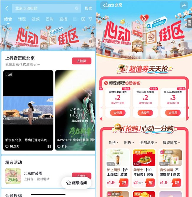 上抖音搜「北京心动街区」,领北京逛吃福利,顺手就能把春日遛弯的快乐带回家!