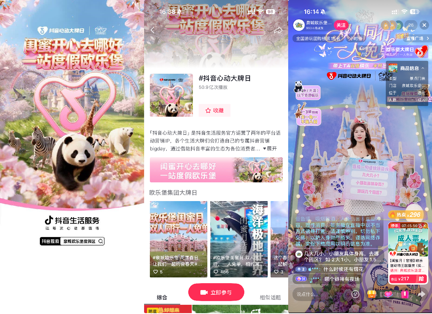 作为春节与五一间的出游“波谷期”,三四月市场表现乏力,向来是文旅行业的共同难题。客流少、转化低、增长乏力,多数品牌只能被动等待旺季来临。欧乐堡选择主动破局,携手抖音生活服务S+级IP「抖音心动大牌日」,延续 “闺蜜月” 自造节IP,再度把淡季做成属于品牌自身的“旺季”。历经四年深耕,“闺蜜月” 已经从单度假区运营升级为全国 5 家度假区联动,成功实现 “淡季不淡” 的营销突破。