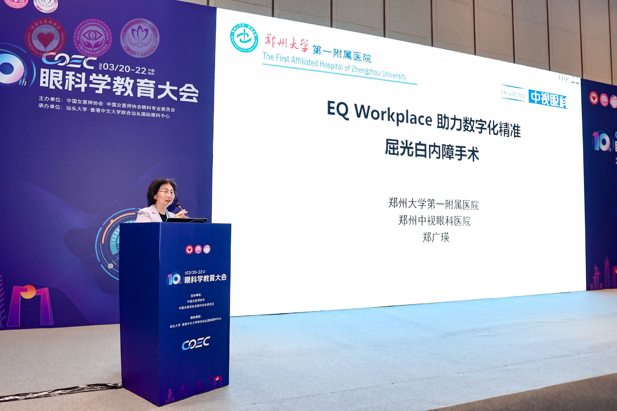 三月风暖,春意盎然,由中国女医师协会主办,中国女医师协会眼科专委会承办的第十届眼科学教育大会在“粤东明珠”汕头隆重举行。现场不仅设有Wetlab&Drylab实操培训,学术讲座亦精彩纷呈。其中在白内障专场,来自郑州中视眼科医院的郑广瑛教授带来了“EQ Workplace助力数字化精准屈光白内障手术”的主题分享。