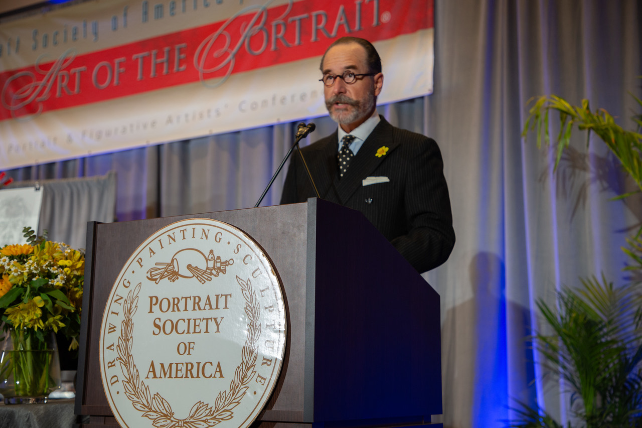 美国肖像画协会主席迈克尔·肖恩·尼尔在年度展览开幕式致辞
