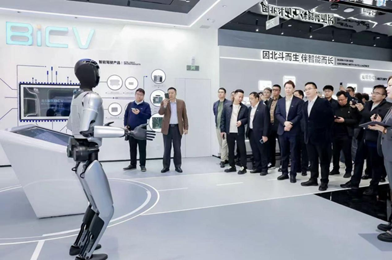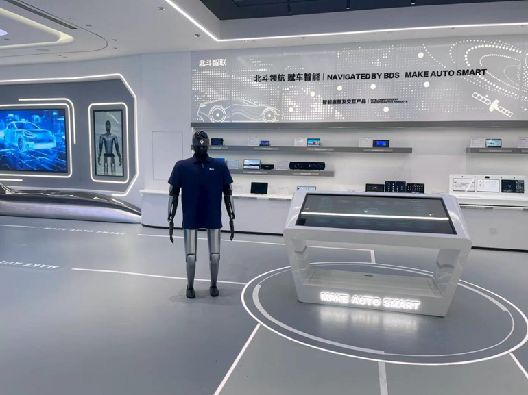 走进北斗示范产业园的展示中心,几乎所有参观者都会被一位特殊的“讲解员”吸引——一位身高1.7米、身着简洁科技感涂装的机器人迈着自然的步子边走边讲,有人提问场馆路线它张嘴就能精准解答;聊到开心处,还会抬手“点赞”、点头回应,甚至能配合大家合影拍照,全程专业又亲切,成了场馆里名副其实的金牌讲解“人气王”。