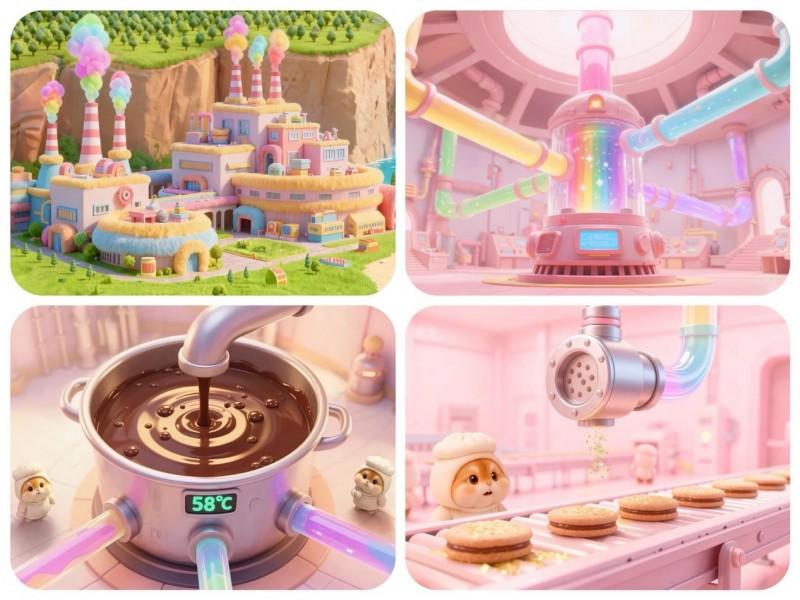 内容创作上,紧扣“治愈解压、寓教于乐”的核心。当下,短视频端流水线类治愈解压视频成为儿童及年轻人的新宠,“治愈、解压、舒适、情绪价值”成为高频词汇。项目团队顺势而为,通过温暖的事件引出解压的流水线制作过程,搭配温馨治愈的画风,让儿童在舒适的故事节奏和画面中,捕捉积极向上的情绪能量,同时了解实物的制作过程和原材料,实现娱乐与知识传递的双重效果。