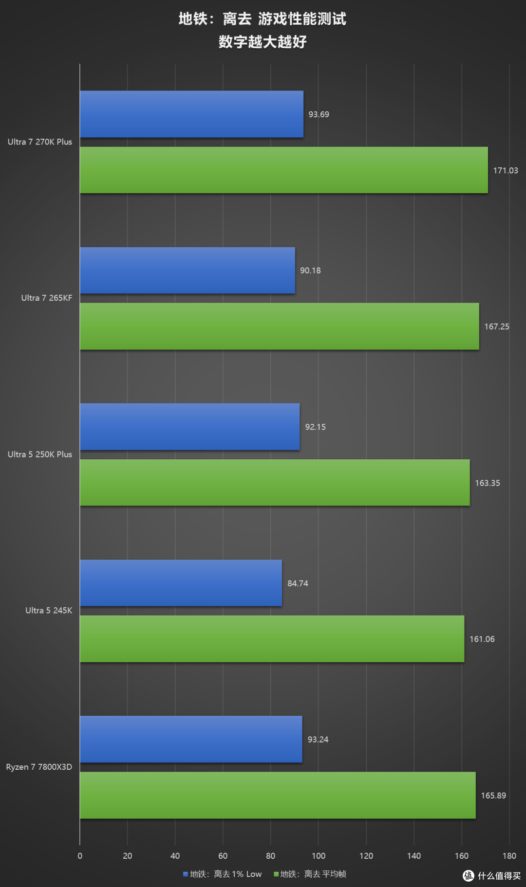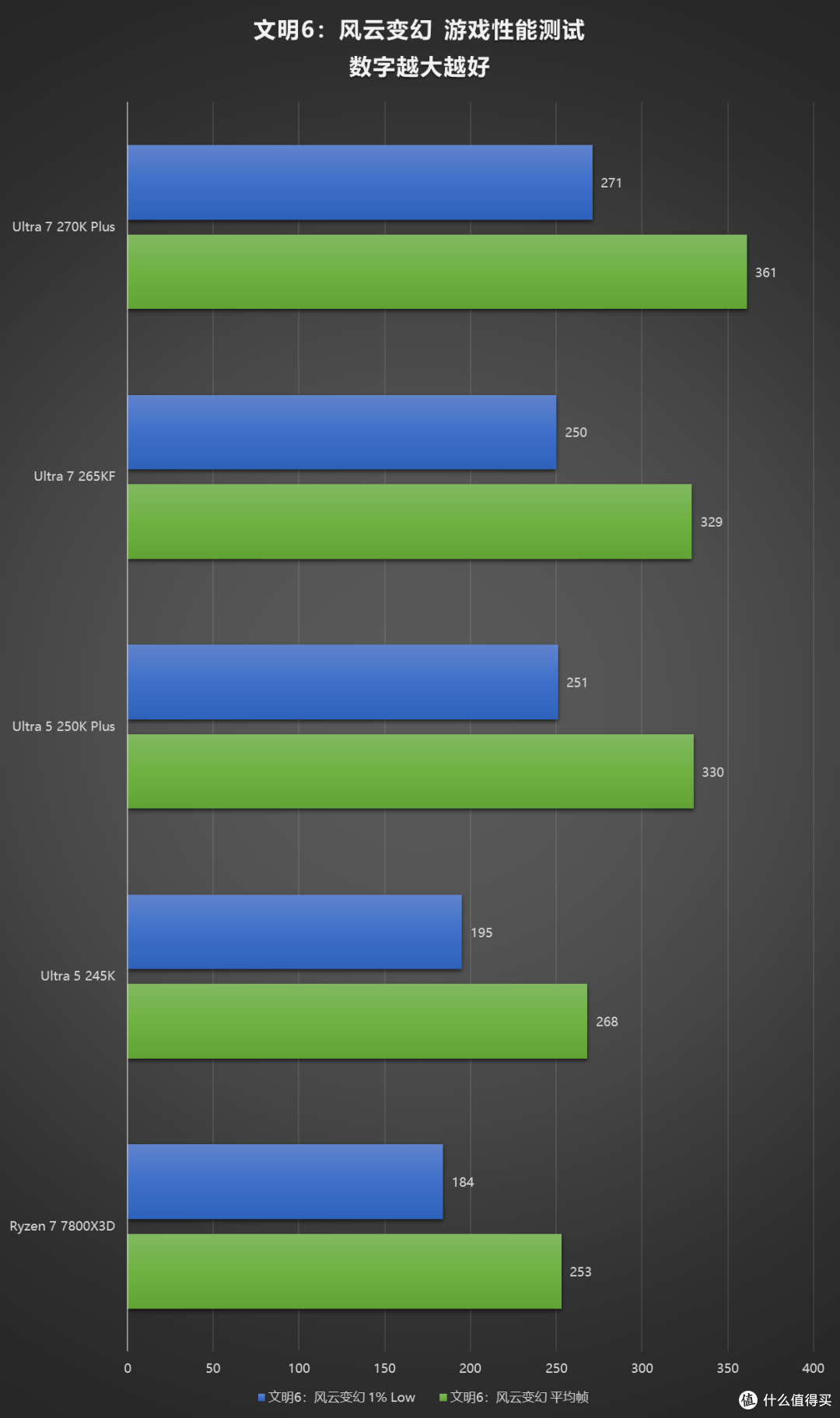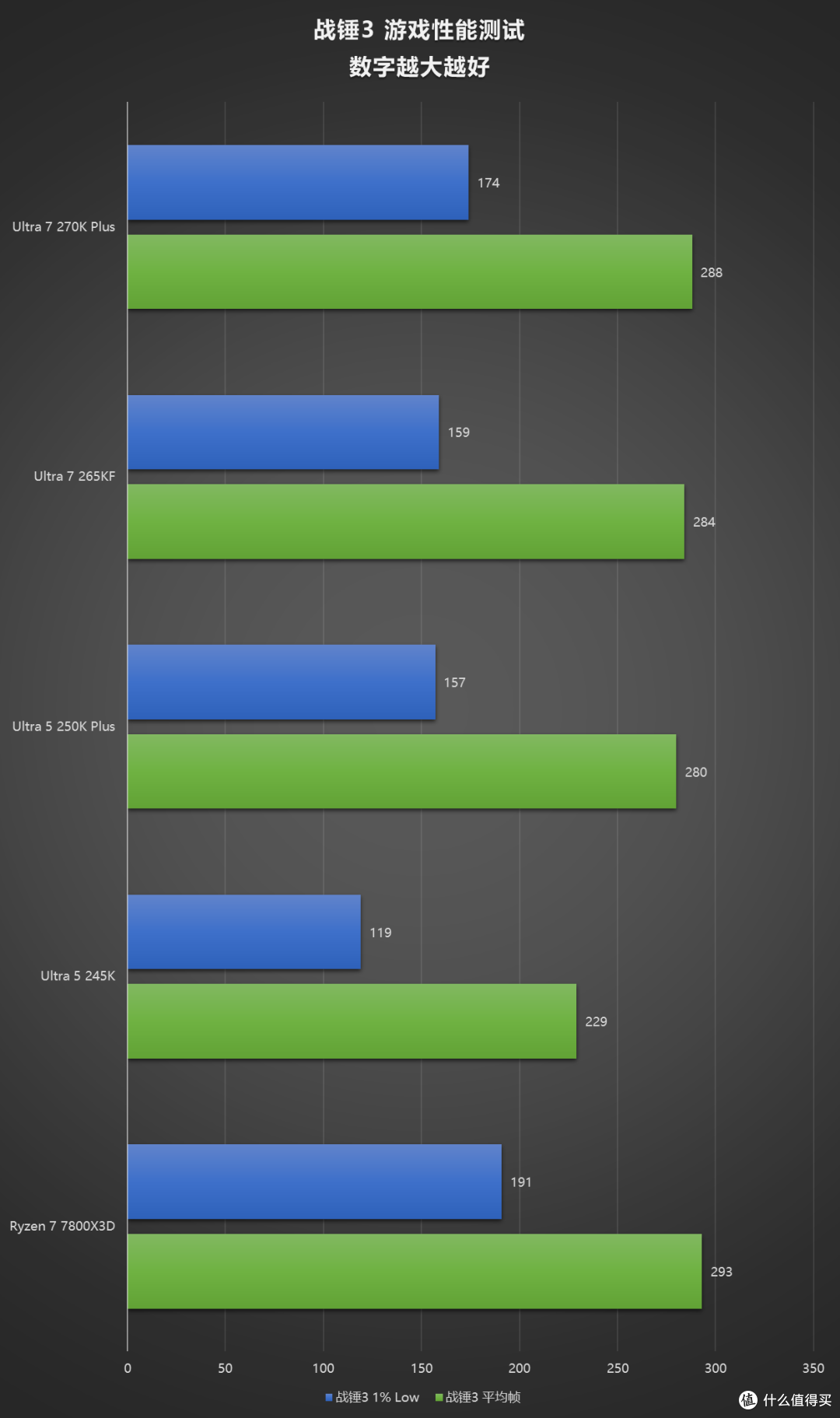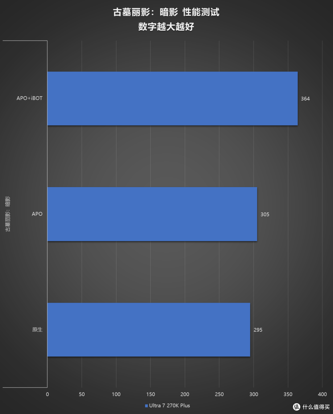使用四款游戏的 Benchmark 做了一组 iBOT 的测试,提升效果还是立竿见影的,开启 iBOT 后,270K Plus 在《无主之地3》《古墓丽影:暗影》中可以和 7800X3D 掰掰手腕,250K Plus 也直接反超了 265KF。