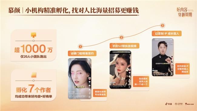 慕颜就很有代表性。这家20人的机构,只签有明星妆造资历的明星化妆师。从源头筛选那些本身就有专业积累、愿意做内容的人,孵化成本自然降低。相比广撒网式招募,精准签约反而更赚钱。