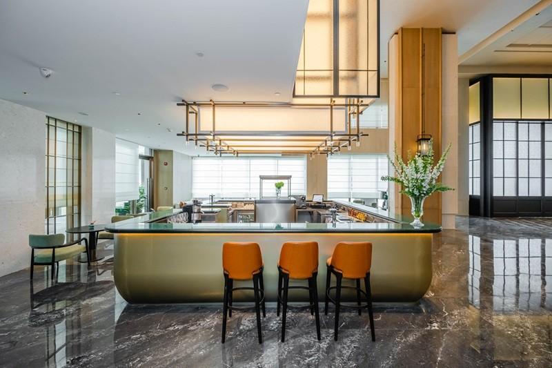 北大堂的木棉花屏风太惊艳,用细腻工艺复刻出花城盛放的模样,阳光洒下来,花瓣仿佛都在发光;南大堂挑高7.5米,片墙设计勾勒出岭南骑楼的廊道感,大堂吧连着户外花园,坐在这里喝茶聊天,抬头就是绿植与光影,惬意又出片。客房走廊藏着小巧思,高低错落的天花模拟老广州天井的光影,墙面隐约印着北京路古街地图,走在里面像在翻阅一本立体的城市绘本——这些设计都源自越秀商管对在地文化的深度挖掘,让老建筑的肌理与现代生活无缝衔接。