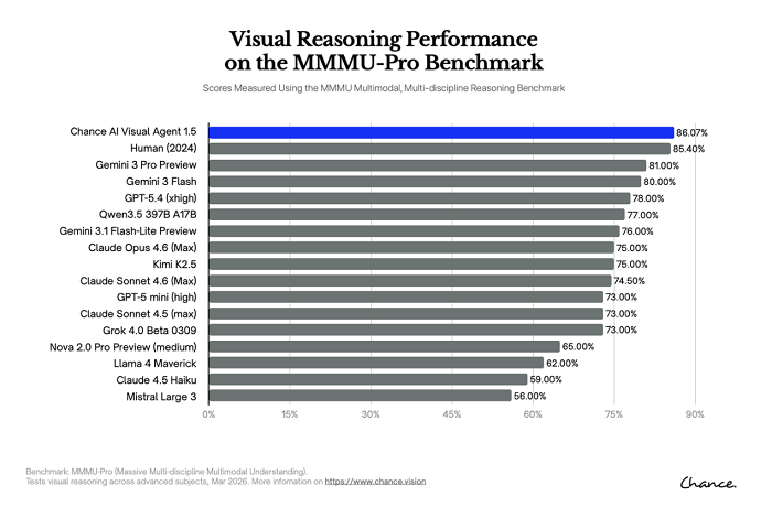 Chance AI在衡量多模态模型“视觉推理”能力的权威基准MMMU相关评测中获第一名的成绩