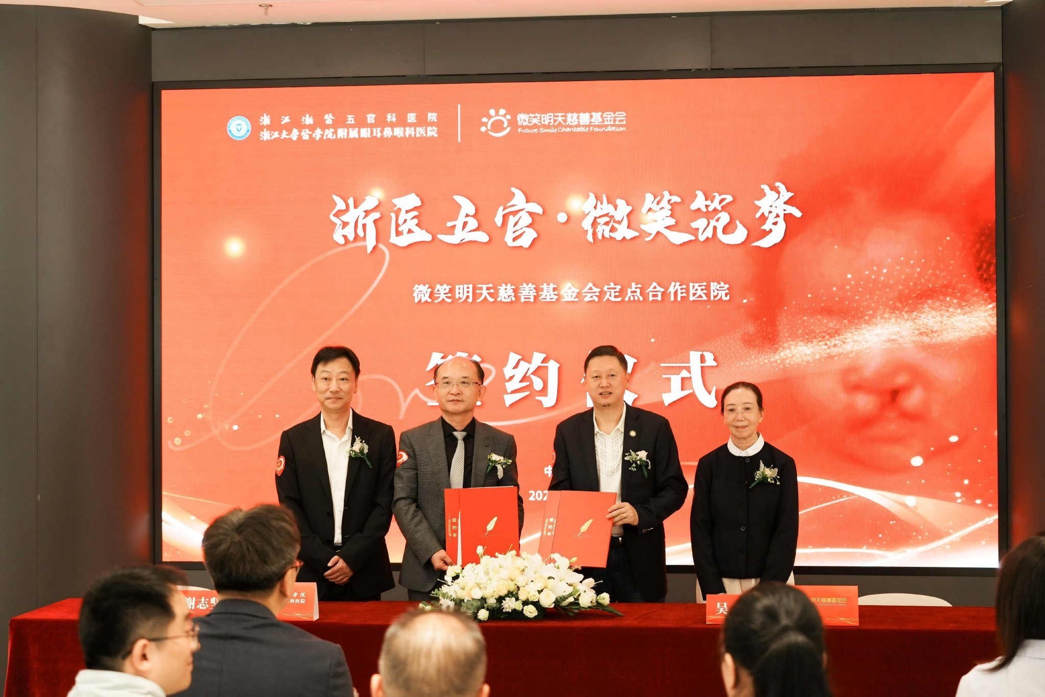 2026年4月20日,浙江大学医学院附属眼耳鼻喉科医院与微笑明天慈善基金会举行定点医院合作签约仪式,双方正式建立战略合作关系,旨在通过“专业医疗+公益帮扶”的深度融合,为困境家庭中的先天畸形患者提供切实有效的医疗救助。