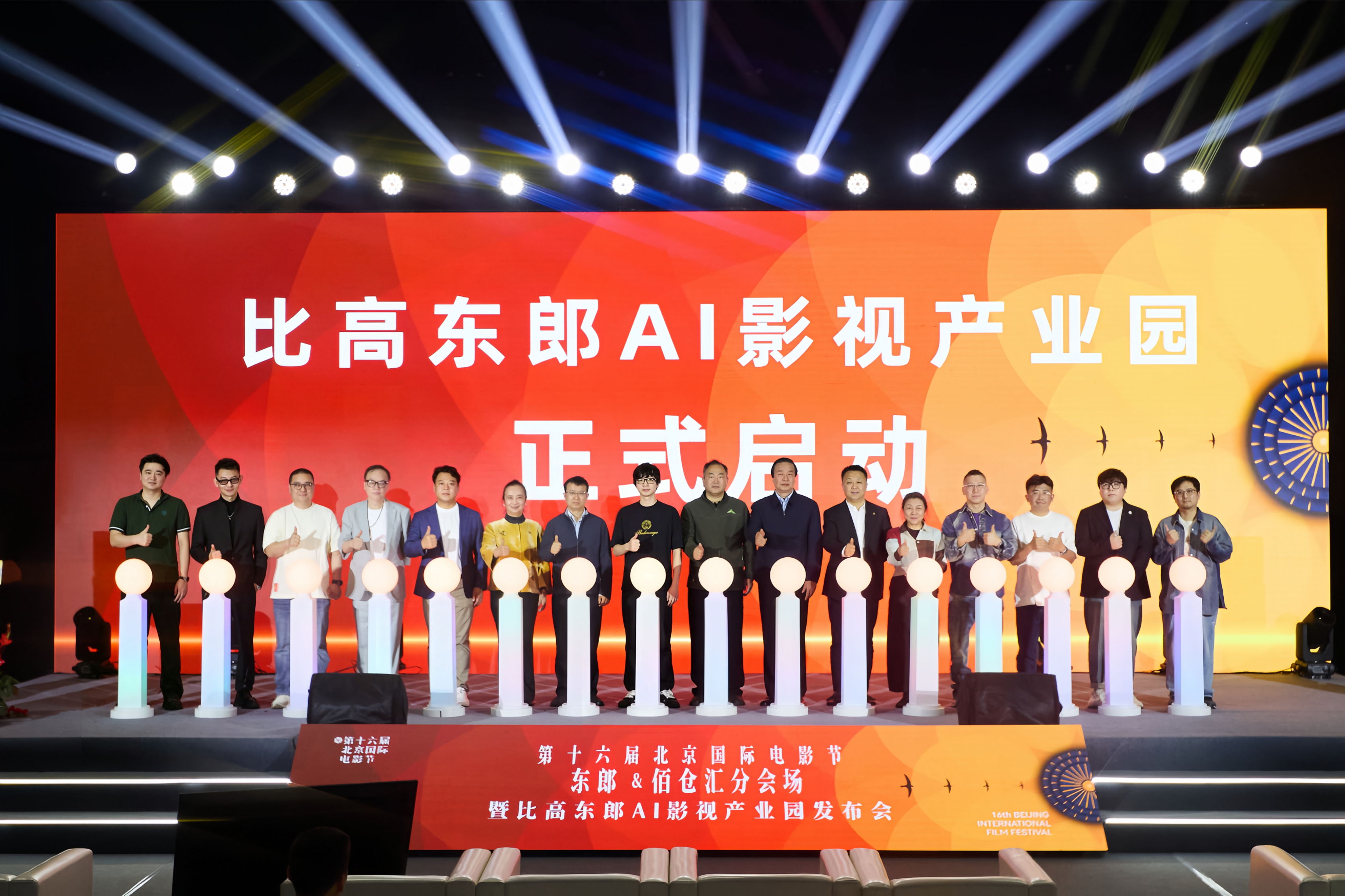 活动最后,到场领导与嘉宾共同上台参与启动仪式,标志着比高东郎AI影视产业园正式启动。本次活动的成功举办,不仅为第十六届北京国际电影节增添重要产业亮点,更有力推动AI技术与影视产业深度融合,助力中国影视产业高质量发展。