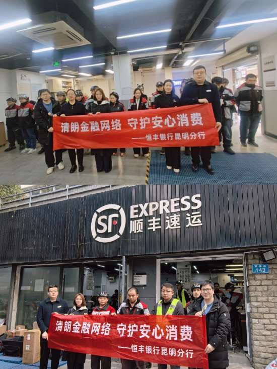 关注近日,恒丰银行昆明分行联动昆明人民中路支行以3·15国际消费者权益日为契机,组建专业315金融消保宣传小队,走进顺丰速运线下站点,聚焦快递行业从业人员金融需求,开展定制化、沉浸式金融消费者权益保护宣传活动,将专业金融知识送到一线快递员身边,切实提升基层劳动者金融安全防范意识与风险识别能力,践行金融为民初心。