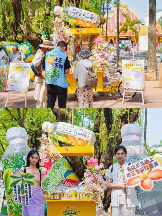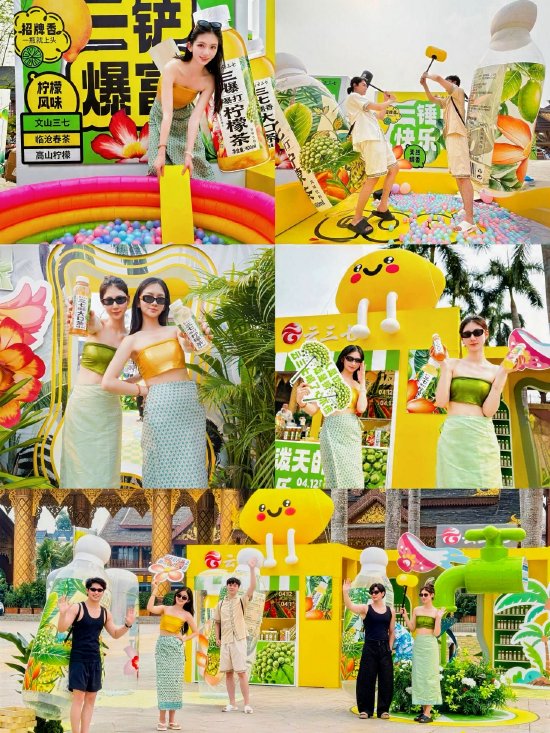 活动期间,快闪区开展打卡赠“泼水节三件套”“水果金铲铲”“爆打不开心”“显眼包巡游”等趣味互动活动,邀请40余位旅行、摄影、美食类博主到场打卡传播。6天累计试饮5000+人次,出货1600件,线上话题总浏览量突破500万,“云三七”话题浏览量突破200万,让云三七即饮茶成为游客打卡、社交分享的必备单品,成为“云南旅行必喝”的文旅符号。