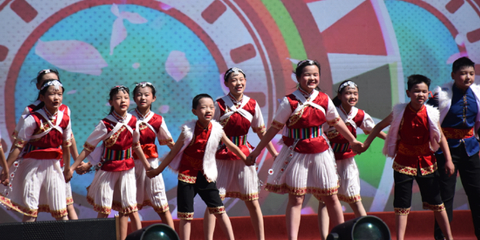 古城区青少年校外活动中心演绎纳西童谣《太阳月亮好》。(丽江融媒记者 杨四娟 摄)
