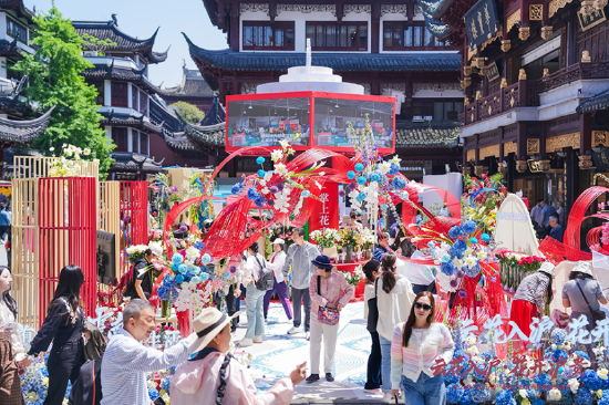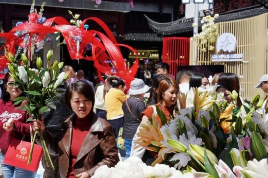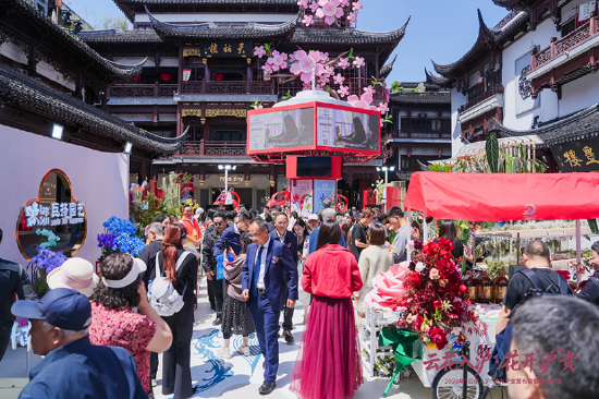 发布会当天,上海豫园商城同步开启互动体验与展示展销,丰富的沉浸式活动吸引市民游客踊跃参与,现场花香四溢、氛围热烈。
